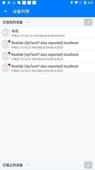 1、防蹭网大师中可以一键检测连接wifi的设备,并且实施阻止。