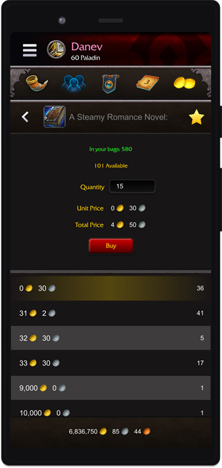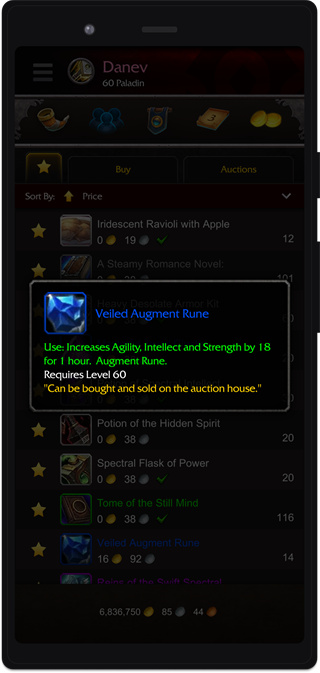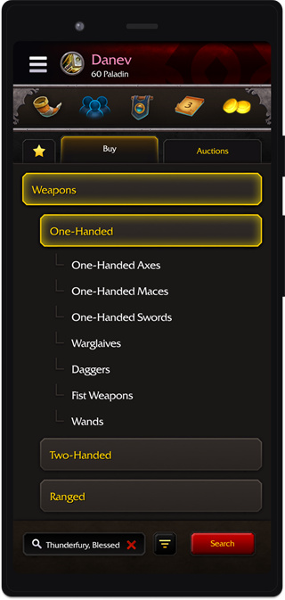 1、进入魔兽世界随身助手app后选择拍卖行,选择你要购买的武器;