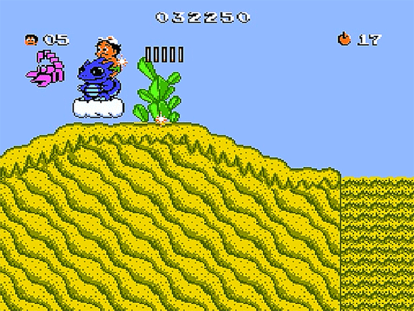1-5:海岸,11血。此关掉血快,要迅速。出场可以只骑龙或者只带回旋镖,因为会马上捡到一个斧头,不然就是1000分的花。第一个蛋是斧头或者花,第一只红色跳跳章鱼后面的云彩站上去会马上下沉,要小心,下坡后第二个蛋是红心蓝龙,过后会有一个放闪电的云,要小心,第三个蛋里面得吸血虫,后面还有一朵放闪电的云,第四个蛋是回旋镖,然后是一条跳起来的箭鱼。