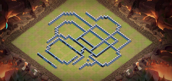 阵型解析:这是一个13本防雪崩,天雪蓝的阵型,能够有效坑杀天女滑步,多格子城墙阻拦大本偏置能够引导部队走偏,部分拐角处凹槽节点能够防止炸弹人对角开墙,对于天女前戏天永前戏都有不错的防御效果。