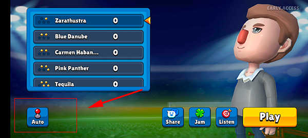 1、打开长号冠军官方版安卓版后,会进入游戏主界面,在开始游戏前我们可以进行一些设置,这样能够保证我们在游戏中的表现更加出色,如下图所示,点击屏幕左下角的【Auto】即可进入设置界面,可进行各种自定义设置。