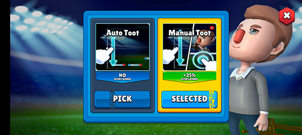 2、游戏内共有两种操作方式供各位小伙伴选择,其中【Auto Toot】为自动模式,该模式下玩家可以进行单手操作,只需控制音符的音高,难度更低;【Manual Toot】为手动模式,需要使用双手控制,一只手控制音符的音高,另一只手的手指点击以吹气,玩家可以自由选择。