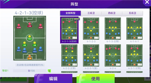 游戏中有很多阵型可以选择,各位可以按照自己的球员库以及熟悉的打法来选择适合的阵型。