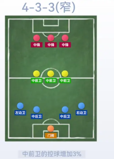 其中433(宽)属于边锋阵容,如果自己拥有的边锋球员较多,可以选择这个阵容。并且你得至少能有4个可以打中前卫的球员。