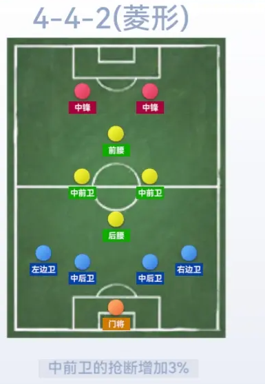 442(菱形)和433(窄)需要的中锋球员较多,球员库中锋多的主帅,可以选择这两个阵型。虽然中国国家队也是菱形中场,还被暴揍,但是游戏里面感兴趣的主帅可以试一试。(ps:后腰得找一个能跑能拦截,体力好的)