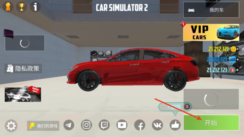 1、在本站下载安装好汽车模拟器2,进入游戏,在车库中点击右下角的“开始”;